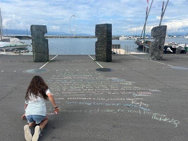Die Kinder der 6. Klasse von Yael Zingg verwandelten die Fussgängerzone in Ouchy mit ihren Kreidebotschaften in ein lebendiges Sprachprojekt. Passanten blieben stehen, lasen die Sätze – und verstanden die Botschaften.